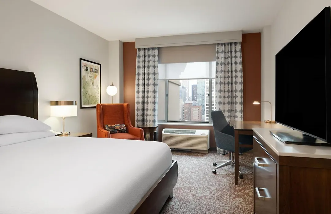 Hilton Garden Inn Chicago Downtown/Magnificent Mile nabízí 361 pokojů s osobním sejfem, pracovním stolem, přístrojem na přípravu kávy a čaje. Extra zahrnuje samostatnou toaletu a sprchu v koupelně.
